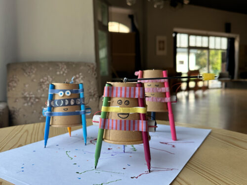 Dieser kleine Helfer ist kein Hightech, aber hocheffizient: Ein Pappbecher, Batterien, ein Motor, Papier, ein paar Stifte und etwas Geschick – schon hast du deinen eigenen Zeichenroboter. Präzise übernimmt er das kreative Chaos beim Weihnachtskarten Malen und sorgt für Designs, die irgendwo zwischen moderner Kunst und